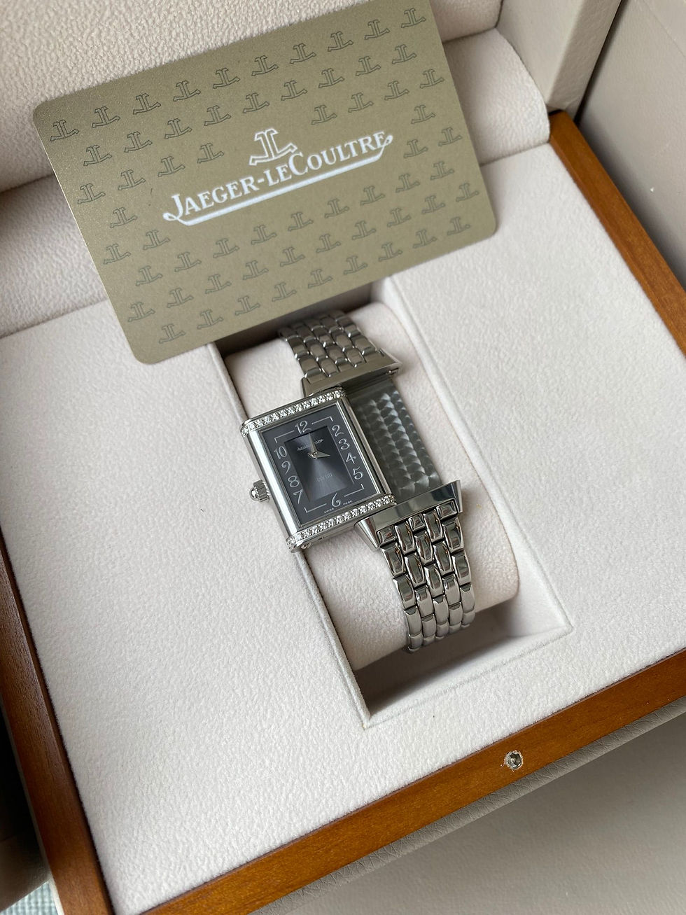 JLC REVERSO DUETTO SMALL STEEL PAVED DIAMONDS MOP DIAL MECHANICAL (MINT)
